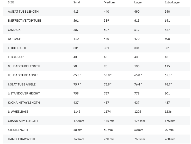 This specifications are from the information the brand releases and only apply to stock bicycles, build ups´ specifications will vary according to the components the buyer chooses.
