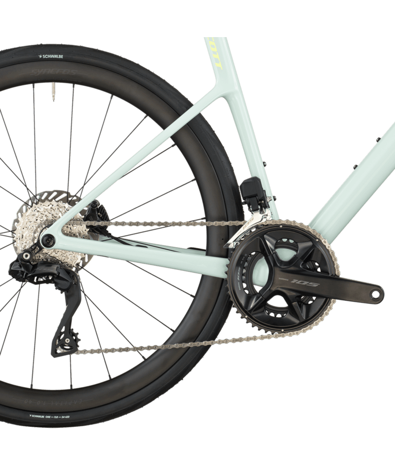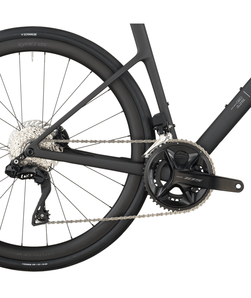 La SCOTT Addict 30 (TW) combina rendimiento y comodidad en un conjunto versátil para todo terreno. Fabricada con un cuadro y una horquilla de carbono Addict HMF con geometría de resistencia, ofrece una posición de conducción relajada sin sacrificar la capacidad de respuesta. Equipada con transmisión electrónica Shimano 105 Di2 bidireccional , frenos de disco hidráulicos BR-R7170 con rotores RT-CL700 y ruedas Syncros Capital 1.0 de 40 mm con neumáticos Schwalbe ONE 700×34C , la bicicleta lo supera todo, desde rutas intensas hasta aventuras en terrenos mixtos. Su almacenamiento integrado y su diseño ligero la hacen ideal para largas jornadas sobre el sillín. Peso aproximado: 18,74 lb; peso máximo del sistema: 120 kg.