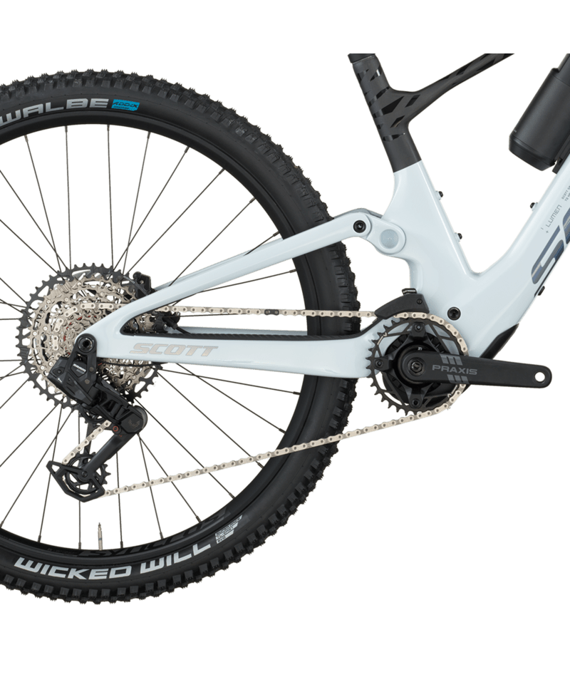 La SCOTT Lumen 910 INT está diseñada para ciclistas que buscan la agilidad de una bicicleta eléctrica de montaña (e-MTB) ligera y de alto rendimiento. Su motor TQ HPR60 (60 Nm) ofrece un 20 % más de par que su predecesora, lo que facilita las subidas y aceleraciones. Con 140 mm de recorrido delantero y 130 mm trasero, suspensión NUDE 6T EVOL y horquilla FOX 34 Rhythm , proporciona una conducción suave y reactiva. La transmisión SRAM S1000 Eagle AXS de 12 velocidades y los frenos Motive Bronze de 4 pistones garantizan cambios precisos y una frenada segura. Las llantas Syncros X-30S TR compatibles con tubeless con neumáticos Schwalbe Wicked Will, además de una batería de 360 Wh y un extensor de autonomía de 160 Wh , te permiten disfrutar de más tiempo con total control.